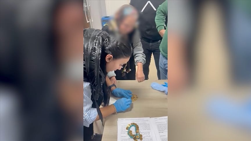 67 ÇEYREK ALTIN VE YÜKLÜ MİKTARDA PARA ÇIKTITakip sonrası polis ekiplerince gözaltına alınan kadın karakola götürüldü. Burada yapılan üst aramasında kadının üzerinden 67 çeyrek altın ve yüklü miktarda para çıktı.