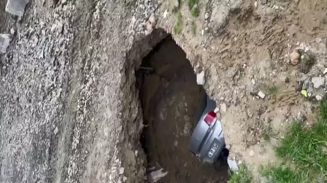 Battalgazi Mahallesi'nde boş arazide oluşan göçük nedeniyle park halindeki otomobil, kayan toprakla birlikte çukurun içine düştü. İhbar üzerine bölgeye polis ve zabıta ekipleri sevk edildi. Polis ekipleri çevrede güvenlik önlemi alarak sokağı şeritle kapattı. Dere kenarında, İSKİ koruma alanı içerisinde kalan noktaya İSKİ ekipleri de gelerek inceleme yaptı. Göçüğün çevresinde risk oluşabileceği değerlendirilirken, önlem amaçlı emniyet şeridi çekilerek araziye girişler engellendi.