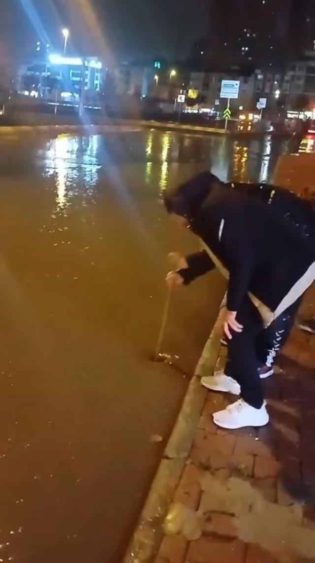 Bazı vatandaşların, sokaklardaki su birikintilerini kendi imkanlarıyla çekmeye çalıştığı görüldü.