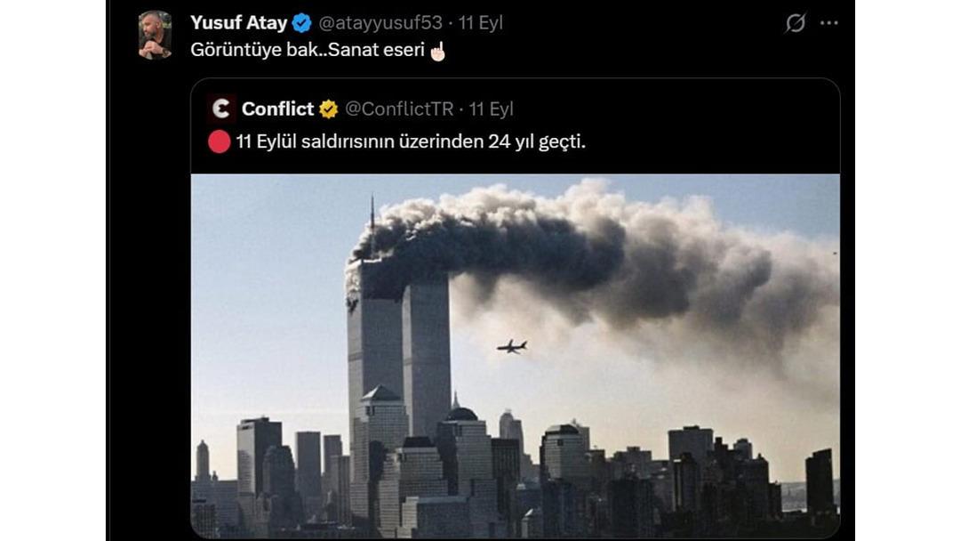 11 EYLÜL SALDIRISINI ÖVDÜEmniyet ifadesinde El Kaide’yi terör örgütü olarak gördüğünü kaydeden Atay, anılan örgütün üstlendiği ABD’deki 11 Eylül saldırılarına ilişkin bir haberi “Görüntüye bak.. Sanat eseri” ifadesi ile alıntıladığı görüldü. Amerikan tarihinin en ölümcül terör saldırısında 2 bin 977 kişi yaşamını yitirmişti. Atay’ın cep telefonunda İsrail Büyükelçiliğini aratma gerekçesini ise, Gazze ile ilgili düzenlenen protestolara katılmak için adresi öğrenme amaçlı yaptığını kaydetti.