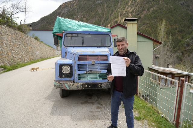 Gümüşhane'nin Torul ilçesinde yaşayan nakliyeci Sinan Çaklı'nın, evinin önünde bulunan ve kış aylarında odunluk olarak da kullandığı çekme belgeli kamyonuna FSM Köprüsü'nden geçiş ihlali yaptığı gerekçesiyle 10 bin 484 TL'lik trafik cezası kesildi.