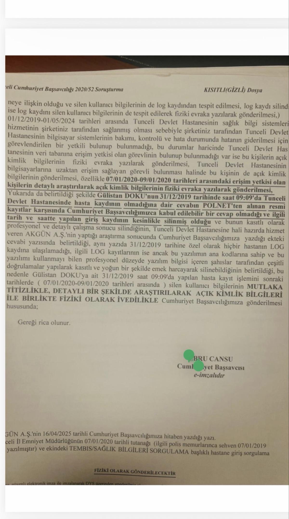 Gülistan kaybolup soruşturma başladığında genç kızın hastane kayıtları siliniyor. POLNET kayıtlarında var ama hastanede yok, başsavcılığa gönderilen “Gülistan’ın hastanelerde kaydı yok” yazısını yazıp imza atan kim?