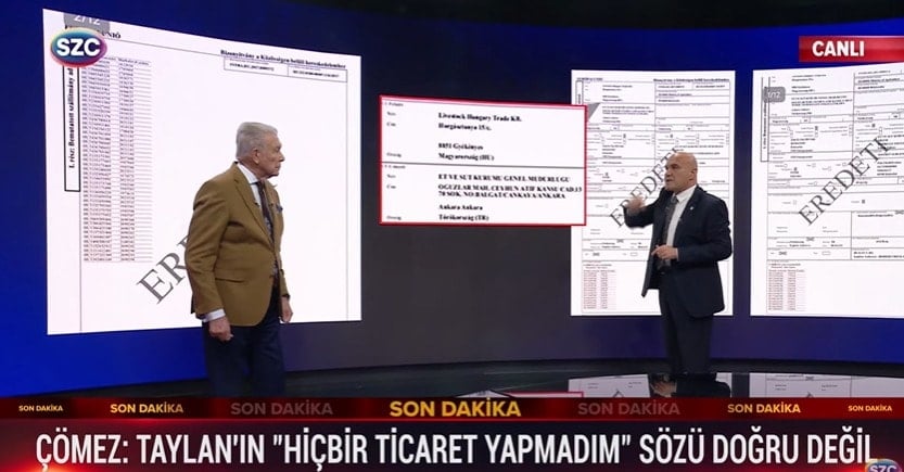 "1 MİLYARLIK CİROSU VAR MERKEZİ İSE BİR EV""- Ben Mücahit Taylan'ın firmasının mali müşavirinin imzasıyla Macaristan Maliye Bakanlığına deklare ettiği evrakları buldum. Onlara baktığımızda 1 Milyarlık cirosu var. Sorum şu, bürokratım dedi ki şirketim var ama iş yapmadım fakat bakıyoruz ki 1 Milyar liralık iş yapmış."