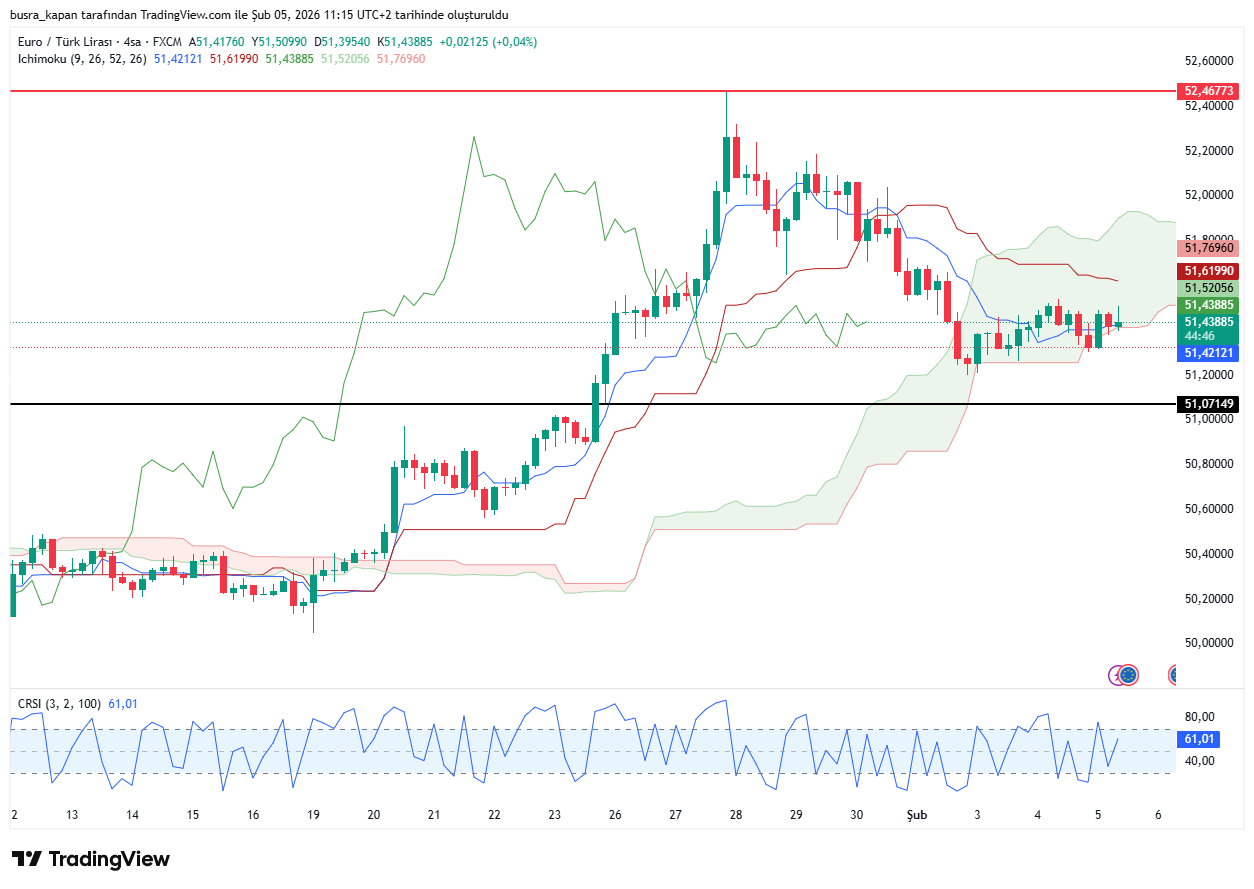 Euro/TL 27 Ocak'ta 52,46 seviyesine yükselerek, tüm zamanların rekorunu kırmıştı. Ancak bu rekorun ardından bir miktar geri çekimeler yaşadı. Euro/TL bugün 12.14'te 51.44 lirada bulunuyor.