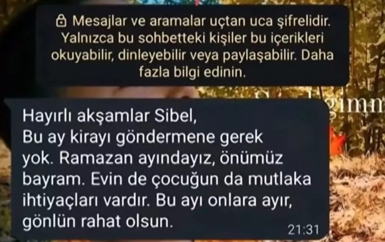 EV SAHİBİNDEN KİRACISINA "BU AY KİRAYI GÖNDERMENE GEREK YOK" MESAJIShow Haber'de yer alan habere göre; son yıllarda ev sahibi ve kiracılar sıklıkla karşı karşıya geliyor. Ancak bu kez durum farklı oldu. Bir ev sahibinin kiracısına attığı mesaj adeta yüreklere dokundu. İnsanlık ölmemiş dedirten o mesajda ev sahibi kiracısına, "Bu ay Ramazan ayı önümüz de bayram, kirayı ödemene gerek yok. Gönlün rahat olabilir" değerlendirmesinde bulundu.