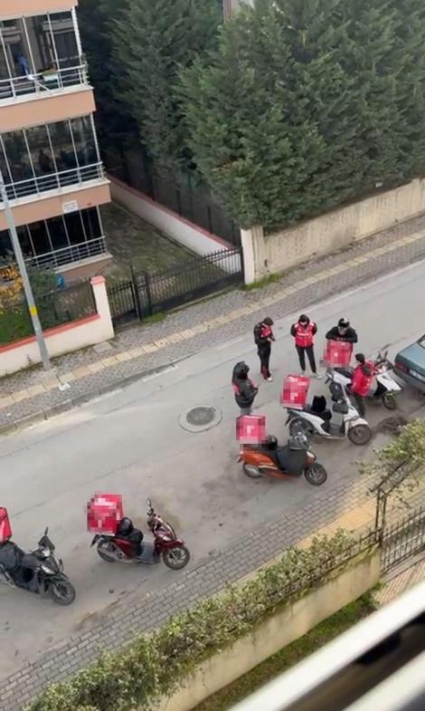 Evine 20 günde 400 sahte sipariş ile asılsız ihbar geldi; kapıda yan yana sıralanan motokuryeler kamerada