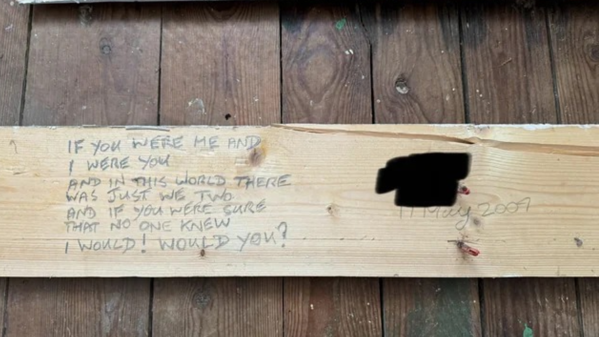 Bir kullanıcı Reddit'de arkadaşının evini dekore ederken kafasını karıştıran bir notu paylaştı. Gizemli bir not bulan adam, tadilat sırasında süpürgeliklerin şaşırtan bir mesajla karşılaştığını söyledi. Reddit'de paylaşım yapan adam "Panolardan birinde garip bir mesaj bulduk. Bunun kime ait olduğunu bilen var mı? Şarkı sözleri olabileceğini düşündüm ama Google'da hiçbir sonuç bulamadım." diyerek yardım istedi.