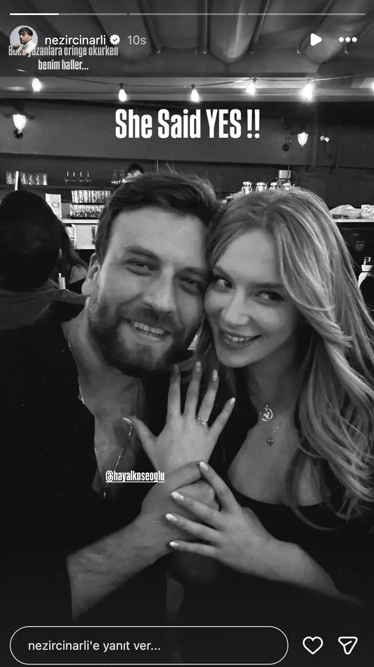Köseoğlu, Nezir Çınarlı'nın önünde diz çöktüğü o anları ve yaşadığı şaşkınlığı takipçileriyle paylaştı. Ünlü çifte, meslektaşlarından ve sevenlerinden tebrik mesajları yağdı.