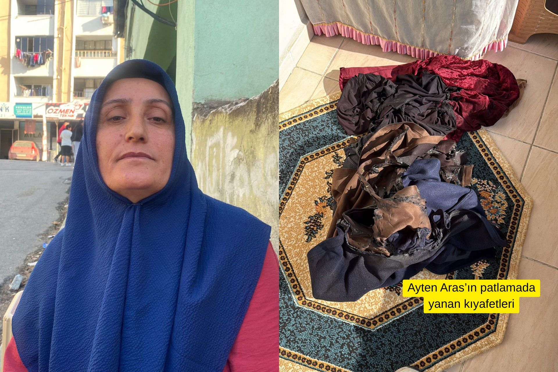 Yangından kıl payı kurtulan Ayten Arası ve patlamada yanan kıyafetleri"İÇERİDE 12 KİŞİYDİK"Patlamanın olduğu güne ilişkin ise Aras, "Cumartesi sabah 8’de işe gittim. İçeride 12 kişiydik. Şengül, Hanımi, Cansu, Nisa ve ben aynı masada paketleme yapıyorduk. Kızlar bana ürün açıp veriyordu, ben de kolonya kutularını paketliyordum. Saat 9 olmadan Tuncay bize ürün hazırlıyordu, kimyasal karıştırıyordu. Tankı doldurup transpaletle makinelerin yanına getirdi ve patlama oldu" dedi.