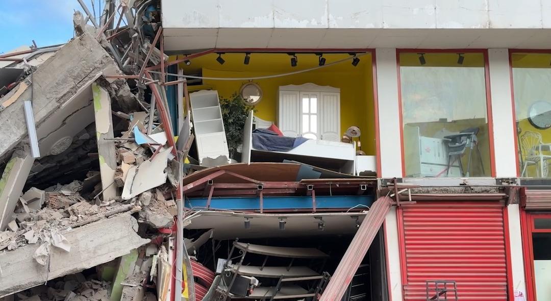 Öte yandan, binanın çöktüğü sırada, kaldırımda el ele yürüyen anne ve kızının savrulan beton parçalarından kaçarak kurtulduğu anlara ilişkin güvenlik kamerası görüntüleri ortaya çıktı.
