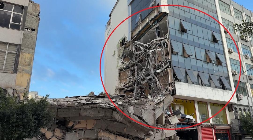 İskenderun'da yıkım çalışması sırasında ağır hasarlı binanın çökmesi sonucu, bitişikteki alışveriş merkezi de hasar aldı.