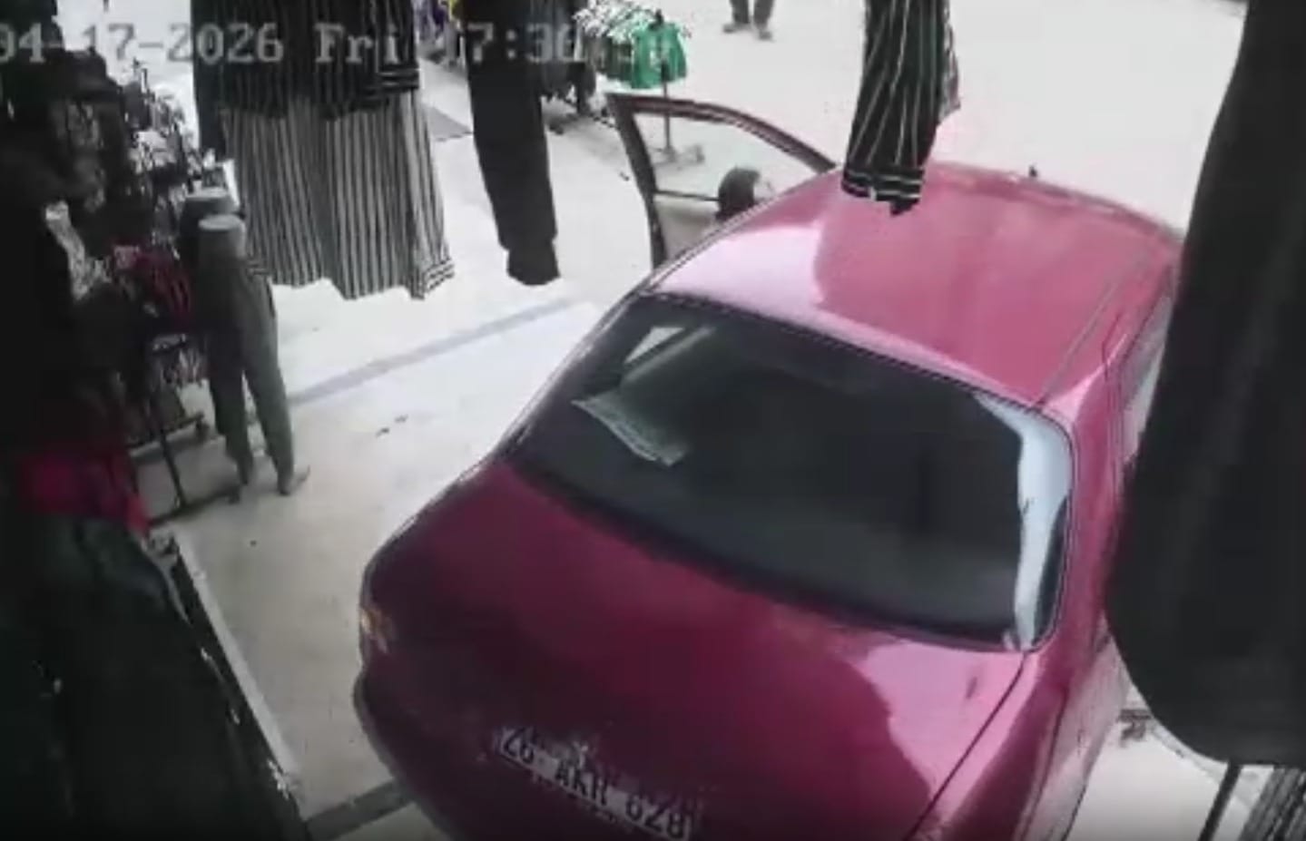 SON ANDA DURDURULDU!O sırada çevrede bulunan bir kişi, hızla aracın peşinden koşarak içine bindi ve el frenini çekmeyi başardı. Böylece otomobil, mağazaya girmeden saniyeler önce durduruldu ve olası bir facia önlendi.