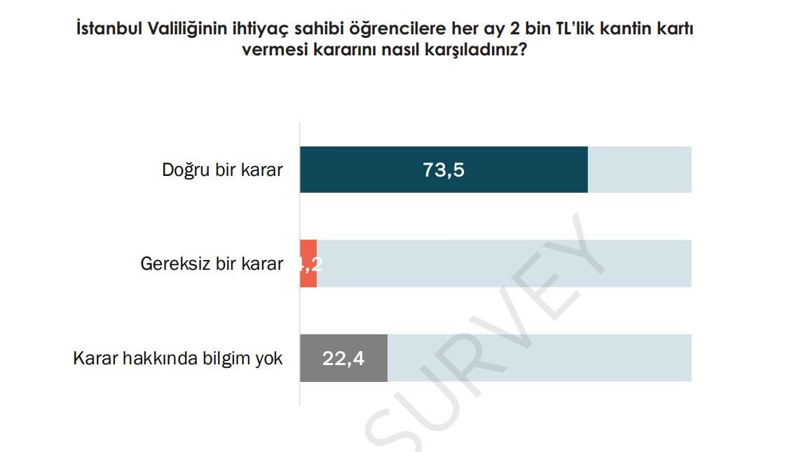 VALİLİĞİN "KANTİN KARTI" UYGULAMASINA TAM DESTEKKatılımcılara yöneltilen bir başka soru, İstanbul Valiliği'nin öğrencilere yönelik 2 bin TL'lik kantin kartı uygulamasıydı.