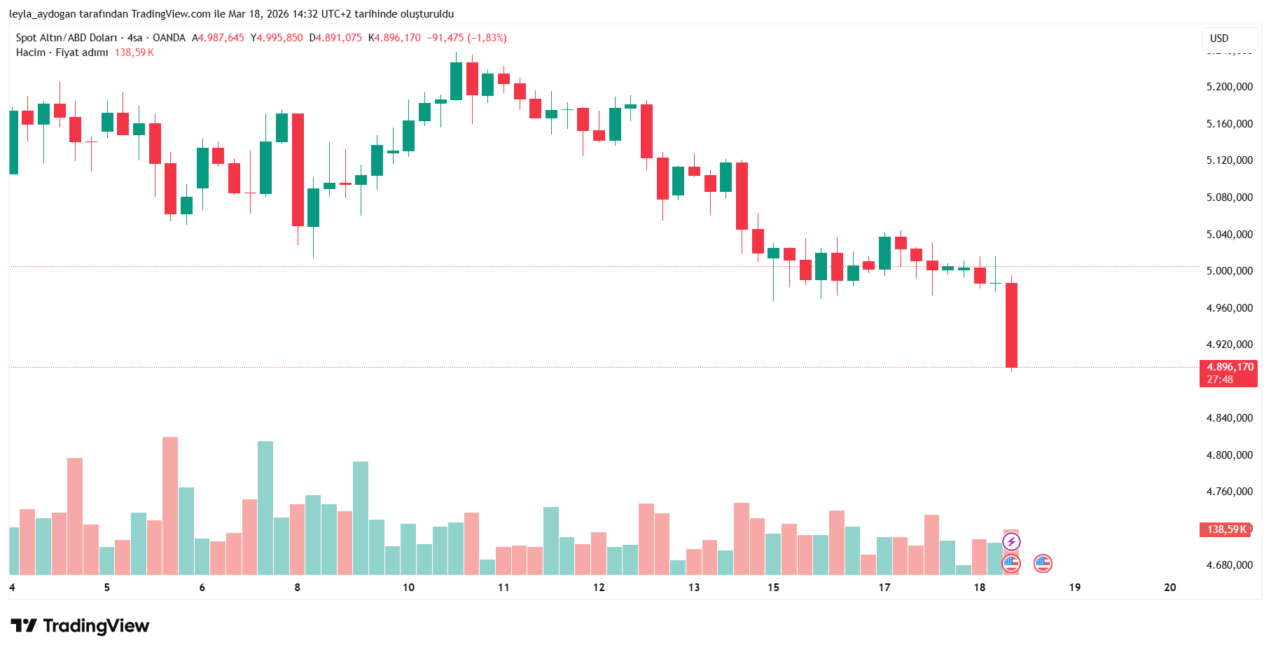 ONS VE GRAM ALTIN ÇAKILDIAltının onsu 4 bin 889 dolara kadar gerilerken, gram altın yurt içinde 6 bin 946 liraya kadar geriledi.