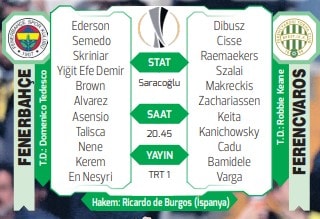 Fenerbahçe, bu akşam UEFA Avrupa Ligi’nin 5. haftasında Macaristan temsilcisi Ferencvaros’u ağırlıyor. Robbie Keane’in çalıştırdığı namağlup konuk ekip, 3 galibiyet ve 1 beraberlikle 3. sırada yer alıyor. Kanarya’nın kazanması hem Son 8 için iddialı konuma gelmesi hem de Galatasaray derbisi öncesi moral bulması anlamına gelecek.