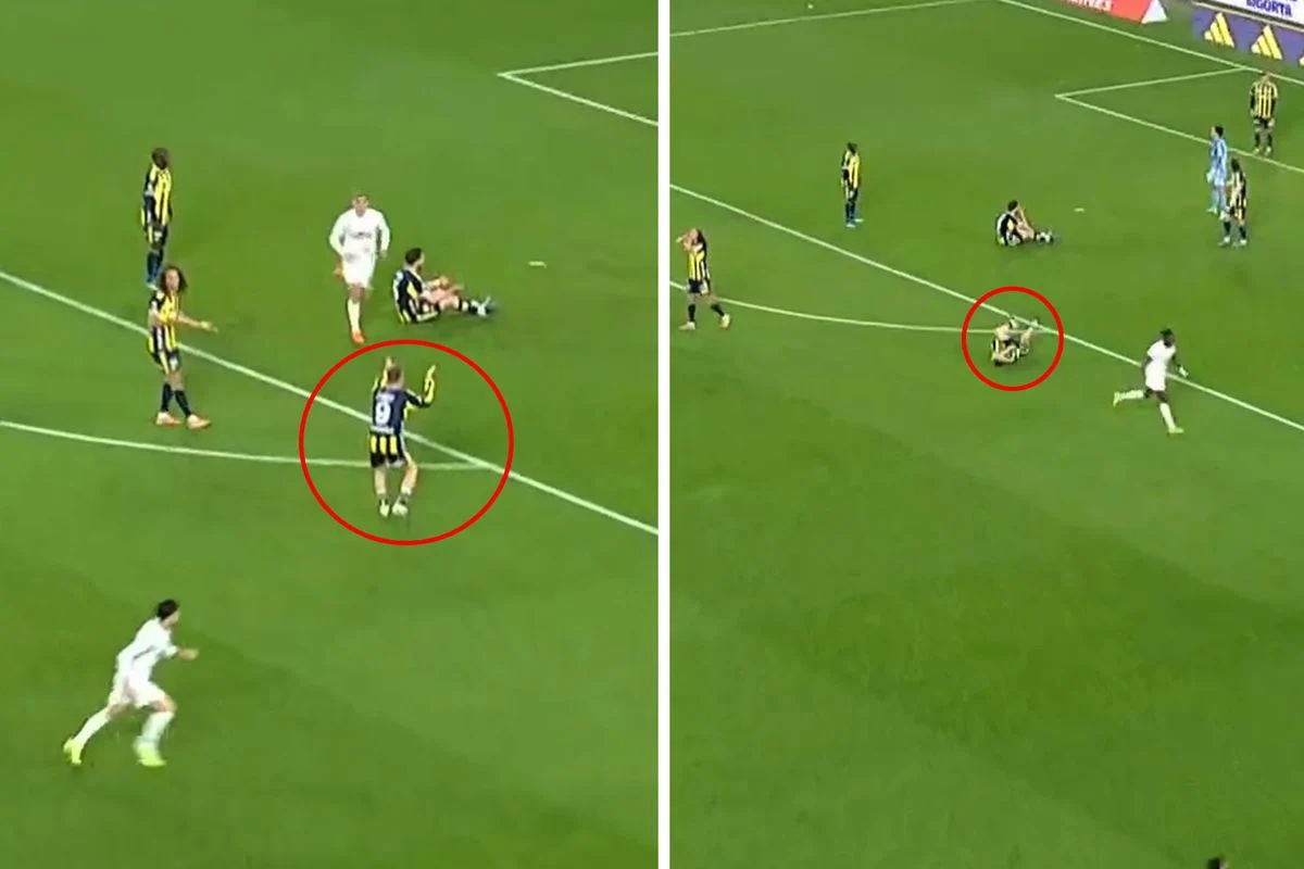 KEREM AKTÜRKOĞLU İSYAN ETTİSarı-lacivertli futbolcular golün ardından büyük bir üzüntü yaşarken Kerem Aktürkoğlu’nun tepkisi olay oldu. Kaleci Ederson’a dönen Kerem Aktürkoğlu, adeta isyan etti.