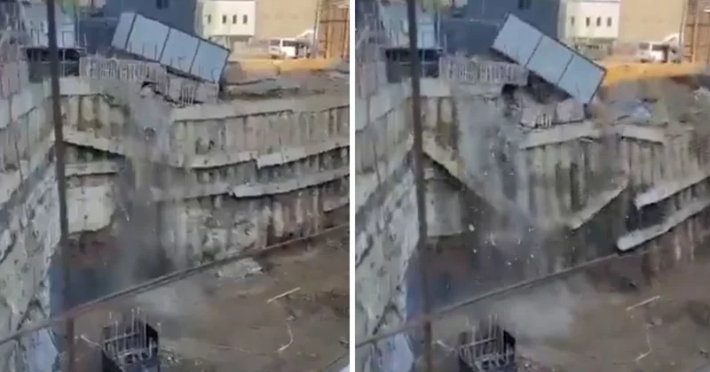 İSTİNAT DUVARI ANİDEN ÇÖKTÜYapımı süren inşaatın temel kazı çalışmaları sırasında, alanı çevreleyen istinat duvarı henüz belirlenemeyen bir nedenle aniden çöktü. İstinat duvarıyla beraber işçilerin kaldığı konteyner de boşluğa düştü.