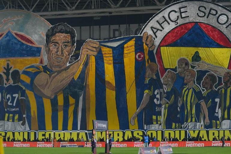 Süper Toto Tribünü’nde ise ‘Mazinde şanlı forma, miras oldu yarınlara’ yazılı pankartın üzerine Fenerbahçe efsanesi Lefter ve Domenico Tedesco ile oyuncuların olduğu koreografiye tribünde uzun süre yer verildi.