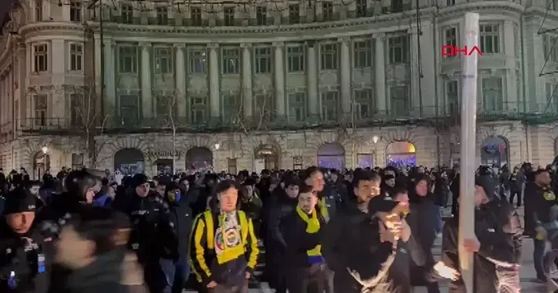 Fenerbahçeli taraftarlar Bükreş sokaklarını tezahüratlarla inlettiler