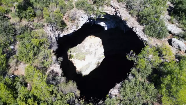 "YUKARI ÇIKMAM 1 SAAT SÜRDÜ"Obruğu ilk gördüğünde başının döndüğünü de söyleyen Kuşçu, "Yukarıdan bakınca dibi gözükmüyordu. Aşağıya indim ama en ufak hatada mahsur kalabilirdim. Orası dünyadan bir yer değilmiş gibiydi. İnanılmaz sessiz bir yerdi. Yukarı çıkmam 1 saat sürdü. Sosyal medyada insanlar, bana buranın videosunu atıp inmemi istiyordu. Ben de meraklandım hem onların merakını gidermek hem de böyle bir tecrübe edinmek için gittim" dedi.