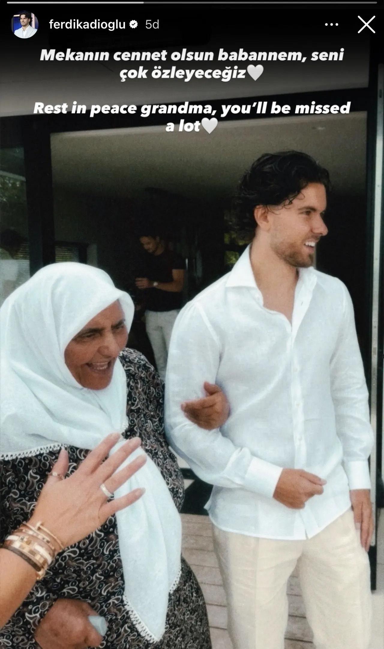 "SENİ ÇOK ÖZLEYECEĞİZ"Kadıoğlu, sosyal medya hesabından babaannesiyle birlikte çekilmiş bir fotoğrafını paylaşarak "Mekanın cennet olsun babaannem, seni çok özleyeceğiz" notunu düştü.