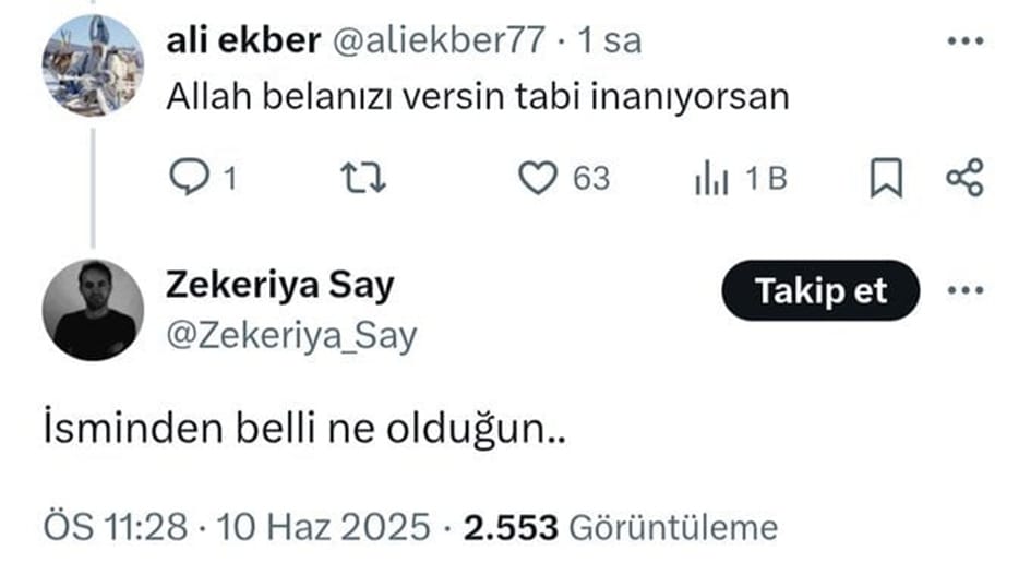 Ayrıca, kendisini eleştiren ve ismi "Ali Ekber" olan bir vatandaşa verdiği yanıtta, Alevileri hedef alan ifadeler kullanması da büyük tepki topladı.