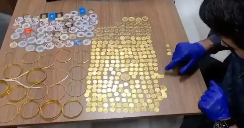 Şüpheli üzerinde yapılan aramada 216 adet çeyrek altın, 15 adet yarım altın, 47 adet ata lira, 4 adet kulplu tam altın, 1 adet beşi bir yerde altın, 56 adet 1 gram paketli altın, 1 adet 0,5 gram altın, 2 adet toplam 20 gram paketli altın, 16 adet farklı ağırlıklarda altın bilezik, 1 adet altın kolye ve 1 adet altın bileklik ele geçirildi. Ele geçirilen altınlar müştekiye teslim edilmek üzere muhafaza altına alındı.