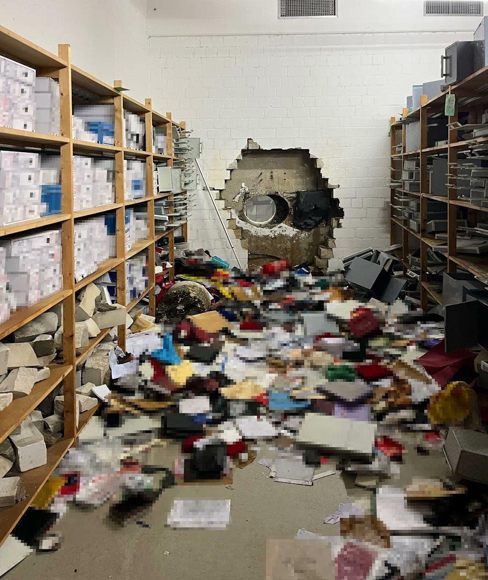 ŞÜPHELİ SİYAH BİR ARAÇ GÖRÜLDÜTanıklar, cumartesi gecesi ve pazar sabahı otoparkta büyük çantalar taşıyan kişiler gördüklerini bildirdi. Polis, video görüntülerinde soygun sabahı aynı otoparktan siyah bir Audi RS 6 model aracın ayrıldığını tespit etti. Pazartesi sabahı yangın alarmının çalmasıyla durum fark edildi ve kasa odasındaki delik ortaya çıktı. Henüz hiç kimse yakalanmadı.