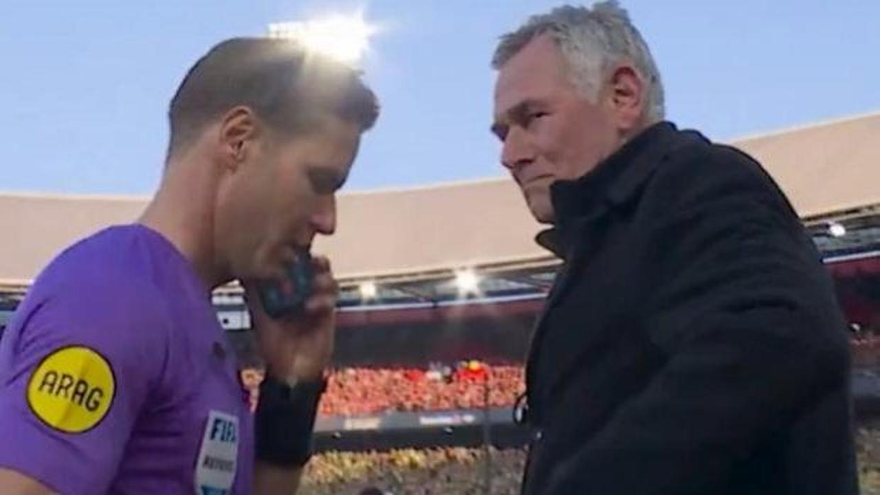 Mücadelenin hakemi Danny Makkelie'nin, karşılaşma sırasında oyun kenarına gelerek telefonla konuşması gündem oldu.