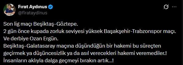 Fırat Aydınus tan derbiye Ozan Ergün ün atanmasına tepki: Dalga geçmeyi bırakın