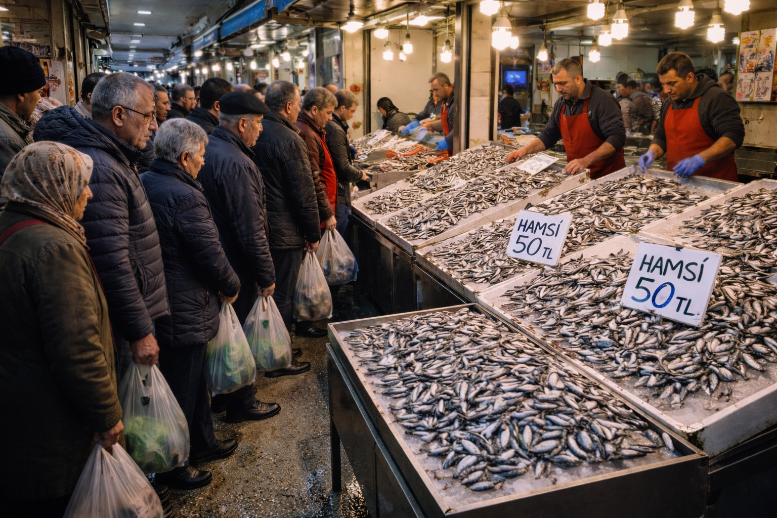 Çimen, “Hamsi daha önce 400 lira seviyelerinde satılıyordu. Daha önce 100 lirayı gördük ama bu yıl ilk kez 50 liraya kadar düştü. Ramazan ayında güzel bir bolluk yaşanıyor. Biz de bu kadar yoğunluk beklemiyorduk, rağbet oldukça fazla” dedi.