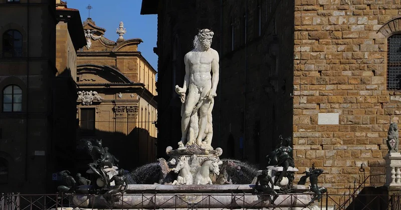 Piazza della Signoria'da bulunan ve heykeltıraş Bartolomeo Ammannati tarafından 1559 yılında yapılan anıta tırmanan turist, polis ekipleri tarafından suçüstü yakalandı.