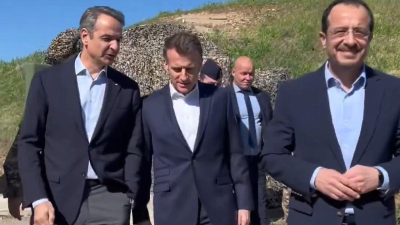 Fransa Cumhurbaşkanı Emmanuel Macron, Yunanistan Başbakanı Kiryakos Miçotakis ve GKRY lideri Nikos Hristodulidis ile GKRY'de üçlü görüşme gerçekleştirmişlerdi.