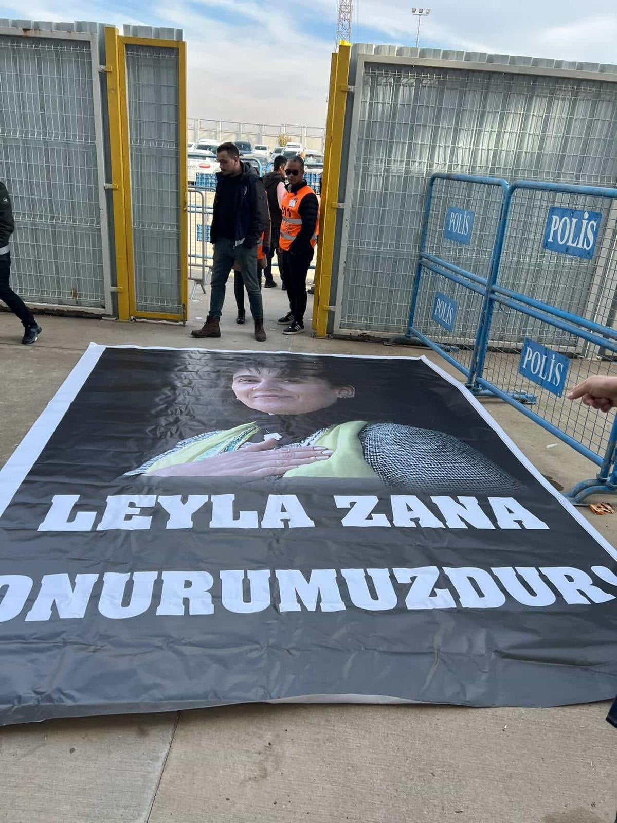 Taraftarlar, pankartın içeri alınmamasının ardından maç boyunca Leyla Zana'ya destek sloganları attı.