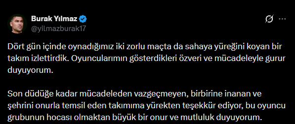 Takımıyla gurur duyduğunu vurgulayan Burak Yılmaz paylaşımında şu ifadeleri kullandı:
