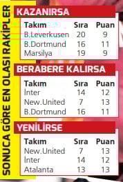 Kopenhag’ın Barcelona’yı yenmesi Napoli’nin Chelsea’yi yenmesi Olympiakos’un Ajax’ı yenmesi Bilbao’nun Sporting’i yenmesi PSV’nin Bayern’i yenmesi Monaco’nun Juventus ile berabere kalması* ya da galip gelmesi Leverkusen’in Villarreal maçından en az 1 puan alması* Marsilya’nın Brugge’den puan alması ya da Brugge’un farklı kazanması* Karabağ’ın Liverpool’a az farkla yenilmesi* ya da puan alması(*Averaj hesapları devreye girer)