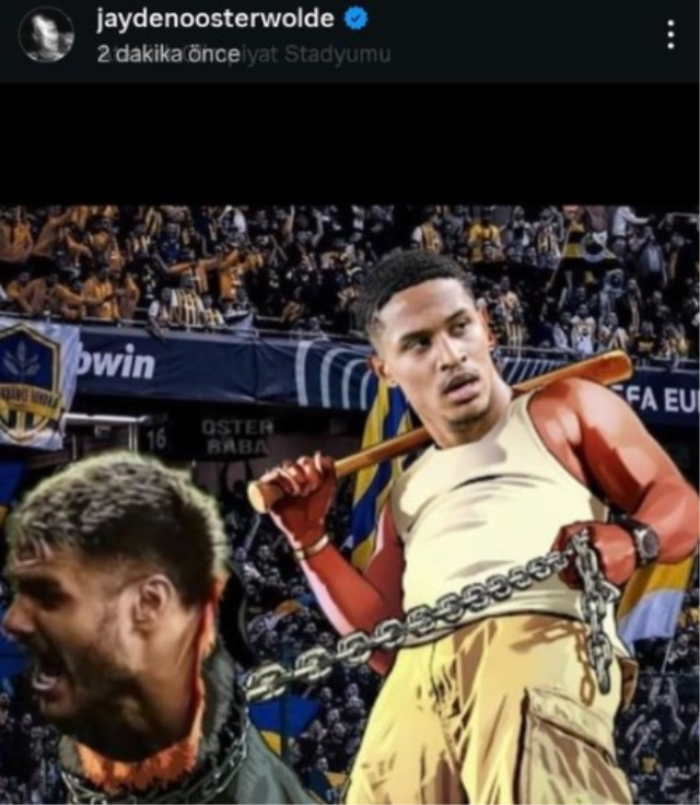OOSTERWOLDE DE BENZER PAYLAŞIM YAPMIŞTITurkcell Süper Kupa'da ezeli rakibi Galatasaray'ı 2-0 mağlup eden Fenerbahçe'nin Hollandalı savunma oyuncusu Jayden Oosterwolde de benzer bir paylaşım yapmıştı. Hollandalı oyuncu, gelen tepkiler sonrası paylaşımı kısa süre içerisinde kaldırmıştı.