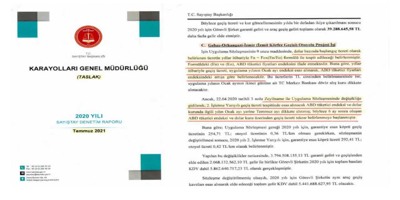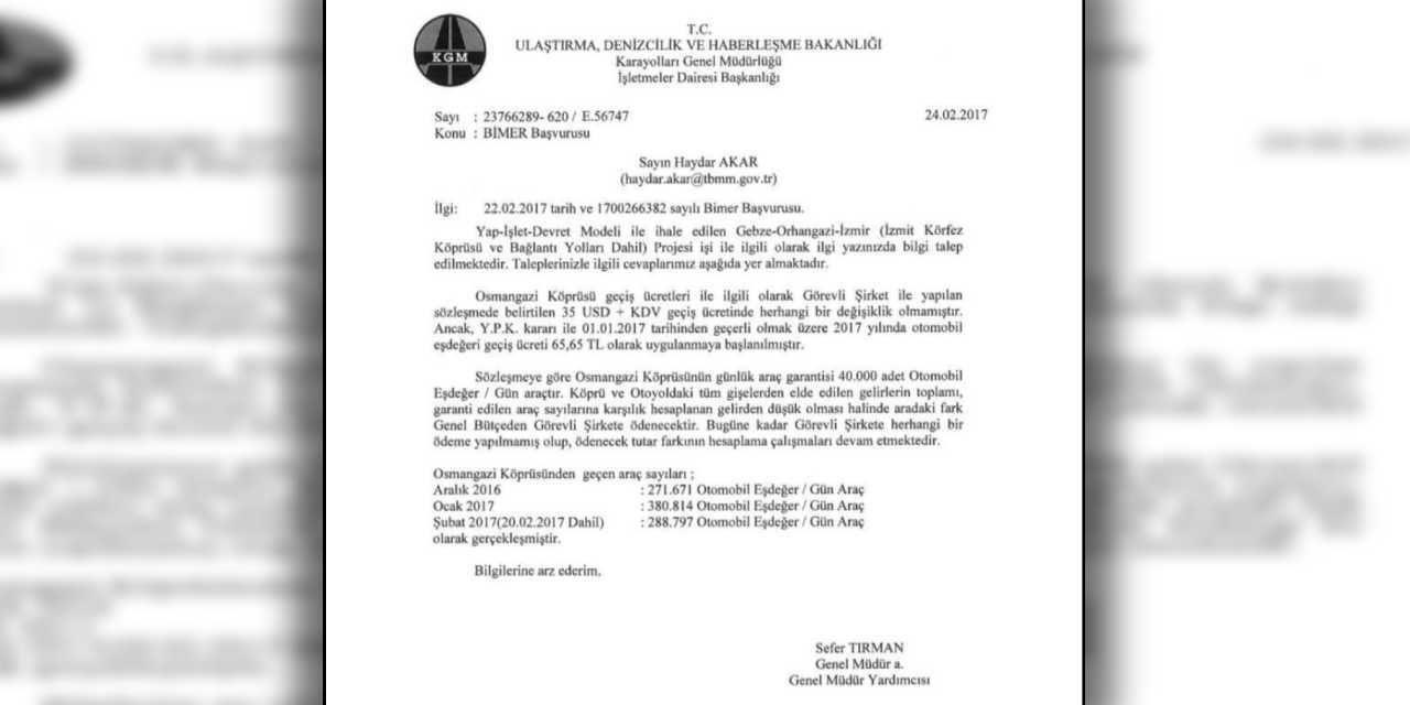 Kaynak: CİMER, Sayıştay, Osmangazi Geçişi Ücret Tarifesi"