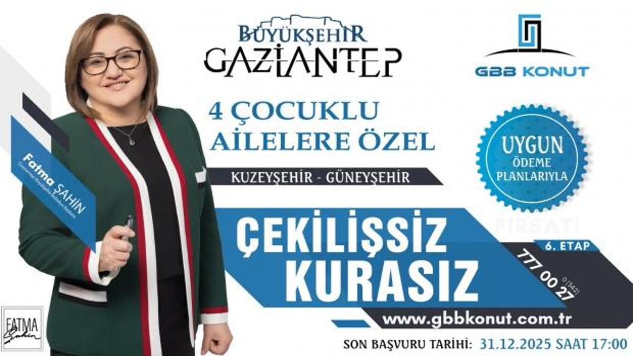 Cumhurbaşkanı Recep Tayyip Erdoğan’ın 2025 yılını "Aile Yılı" ilan etmesiyle birlikte Gaziantep Büyükşehir Belediyesi’nin yeni desteği olan en az 4 çocuklara Gazi Konut’tan çekilişsiz kurasız konut müjdesi başvuruları başladı. Ön başvuru https://basvuru.gbbkonut.com.tr/ internet adresi üzerinden yapılacak.