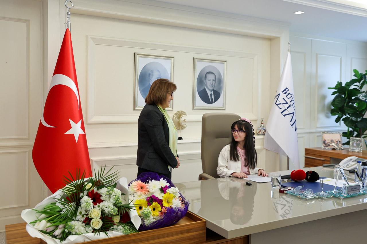 Gaziantep Büyükşehir Belediye Başkanı Fatma Şahin, 23 Nisan Ulusal Egemenlik ve Çocuk Bayramı dolayısıyla koltuğunu ilkokul 4’üncü sınıf öğrencisi Beren Özdemir’e devretti.