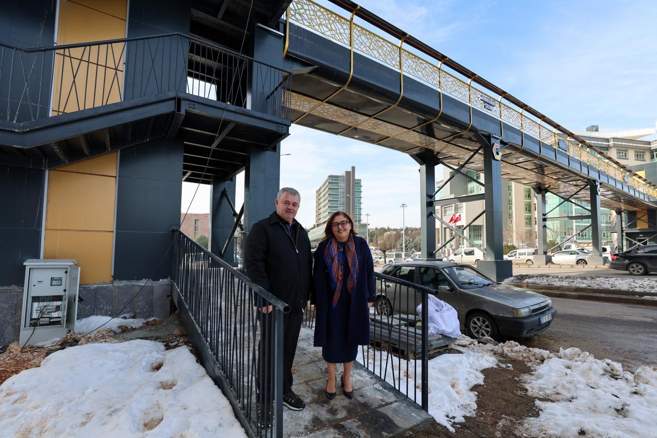 Gaziantep Büyükşehir Belediye Başkanı Fatma Şahin, üst geçidi yerinde inceleyerek teknik ekipten bilgi aldı.
