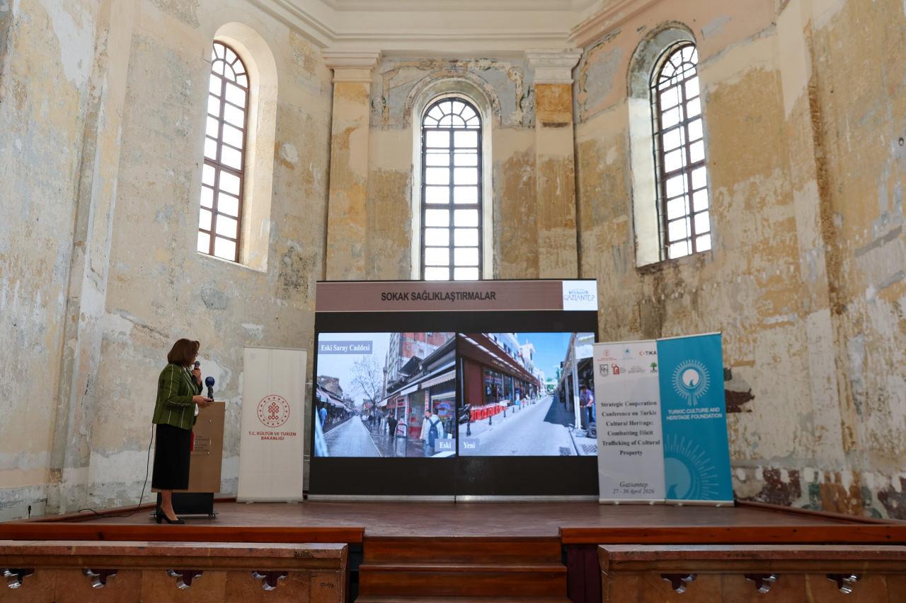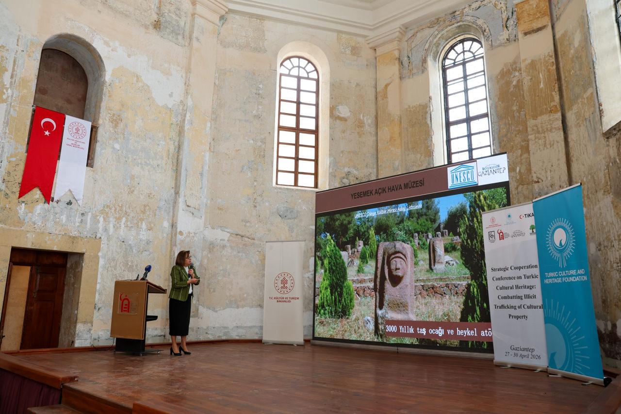 Türk Kültür ve Miras Vakfı Başkanı Prof. Dr. Aktoty Raimkulova, Bugün tarihi ve kültürel birikimiyle öne çıkan Gaziantep’te önemli bir konu için bir araya geldiklerini vurgulayarak, “Türk Kültür Mirası Stratejik İş Birliği Konferansı kapsamında, kültür varlıklarının yasa dışı ticaretiyle mücadeleyi ele alıyoruz. Kültürel miras, milletlerin hafızasıdır; geçmiş ile gelecek arasında kurulan en güçlü köprüdür. Bu mirası korumak hem tarihi hem de ahlaki bir sorumluluktur. Günümüzde eser kaçakçılığı ve yasa dışı ticaret, kültürel mirasımız için önemli bir tehdit oluşturmaktadır. Bu sorunla tek başına değil, ülkeler arası iş birliği ve uzmanlık paylaşımıyla mücadele edilebilir. Programın amacı da kurumlarımızı ve uzmanlarımızı bir araya getirerek ortak çözüm yolları geliştirmektir” diye konuştu.