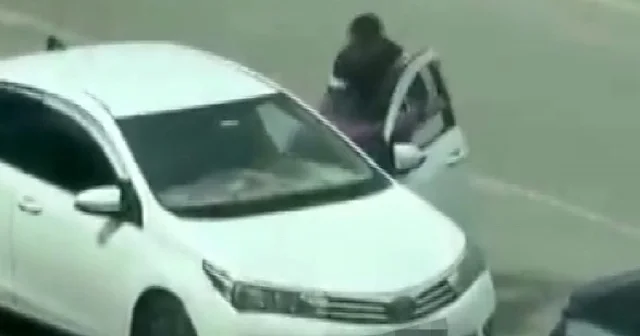 Gaziantep'te bir şahsın, trafikte tartıştığı başka bir şahsı aracında otururken defalarca darp ettiği anlar cep telefonu kamerasına yansıdı.