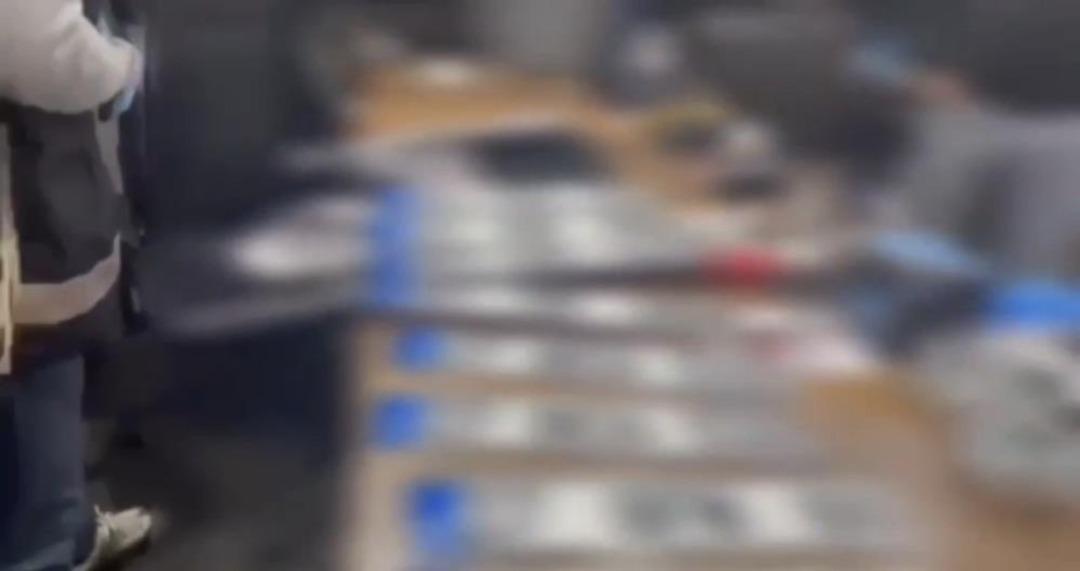 Baskın yapılan adreste bin 300 adet harf ve rakam plaka basma kalıbı, 500 adet plaka levhası, 75 adet hurda plaka, 36 adet sahte plaka, 49 adet araç muayene etiketi, 1 adet plaka mühür baskı makinesi ve 1 adet karekod cihazı ele geçirildi.
