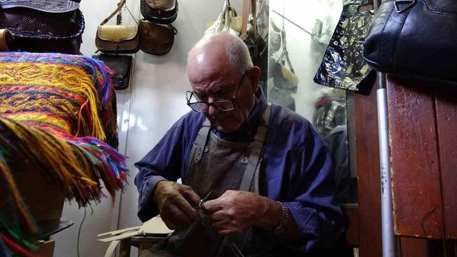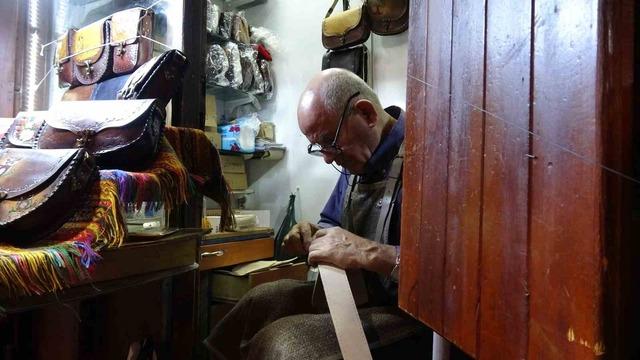 Gün boyunca sürekli çalışarak çantalar yapıyor. İlerleyen yaşına rağmen çalışmaktan vazgeçmiyor. Eline aldığı iğne ve ipliklerle, kestiği derileri dikip çanta haline getiriyor. Ham derileri kullanarak şık tasarımlar oluşturuyor. Her bir çanta, bir sanat eseri konumunda.