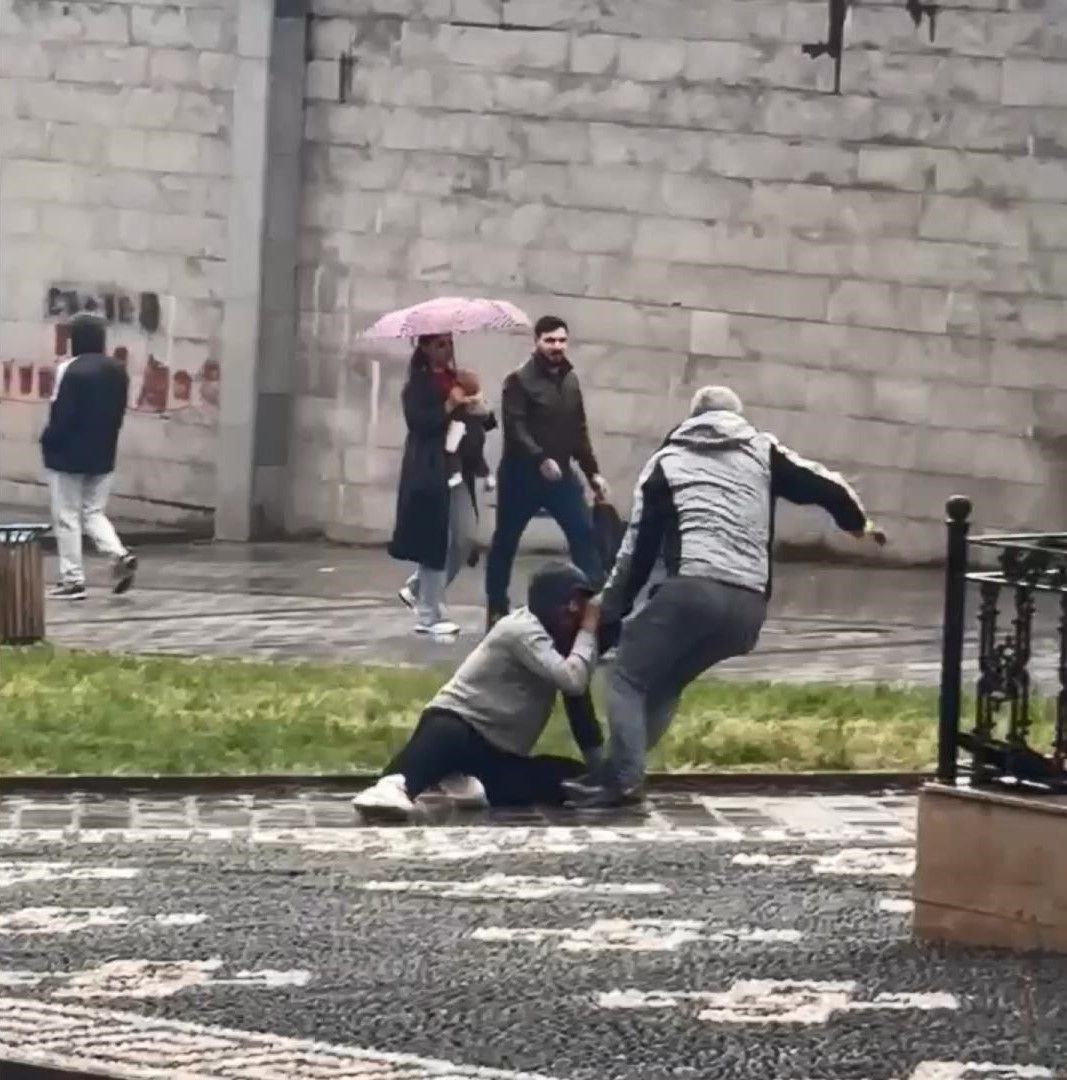 KALDIRIM TAŞIYLA DARBETTİ!Tartıştığı kişiyi yerlerde sürükleyen saldırgan, daha sonra elindeki kaldırım taşıyla yerdeki kişinin bacaklarına vurmaya başladı. Bu sırada çevrede bulunan vatandaşlar kavgayı fark etti ve araya girerek tarafları ayırmaya çalıştı.