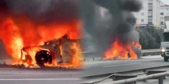 TEM Otoyolu’nda yangın paniği! Cip alev topuna döndü