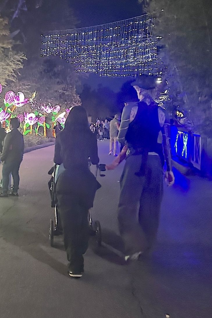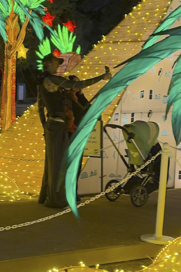 Çift, hayvanat bahçesindeki ışıklı gösterileri ve sergileri seyrederken Machine Gun Kelly, bebeğini kendisi taşıdı.
