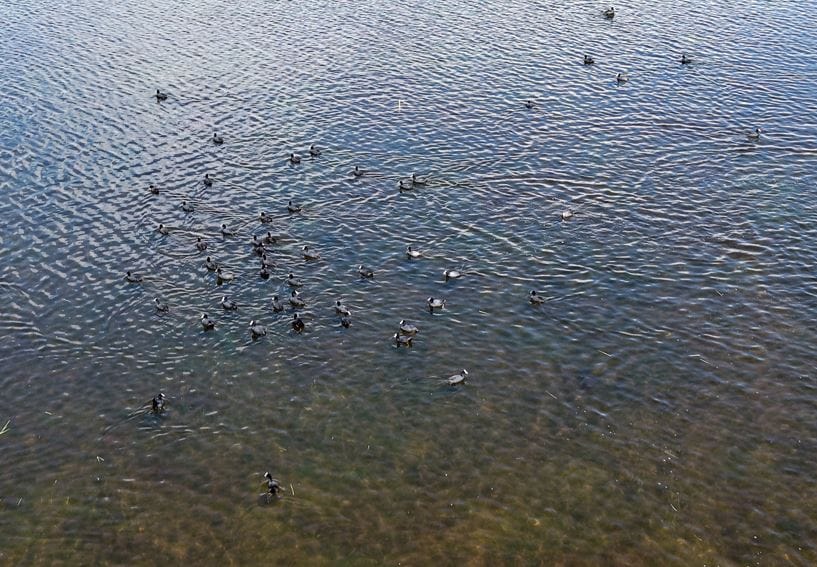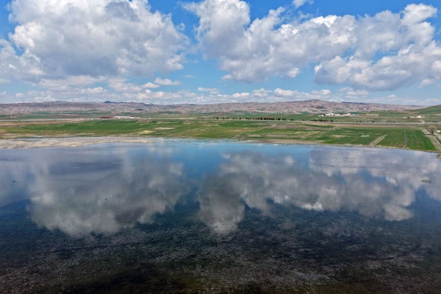 Turna, sakarmeke ve ördek gibi göçmen kuşlar tekrar bölgede görülmeye başladı. Kuşların su üzerindeki hareketleri dronla görüntülendi.