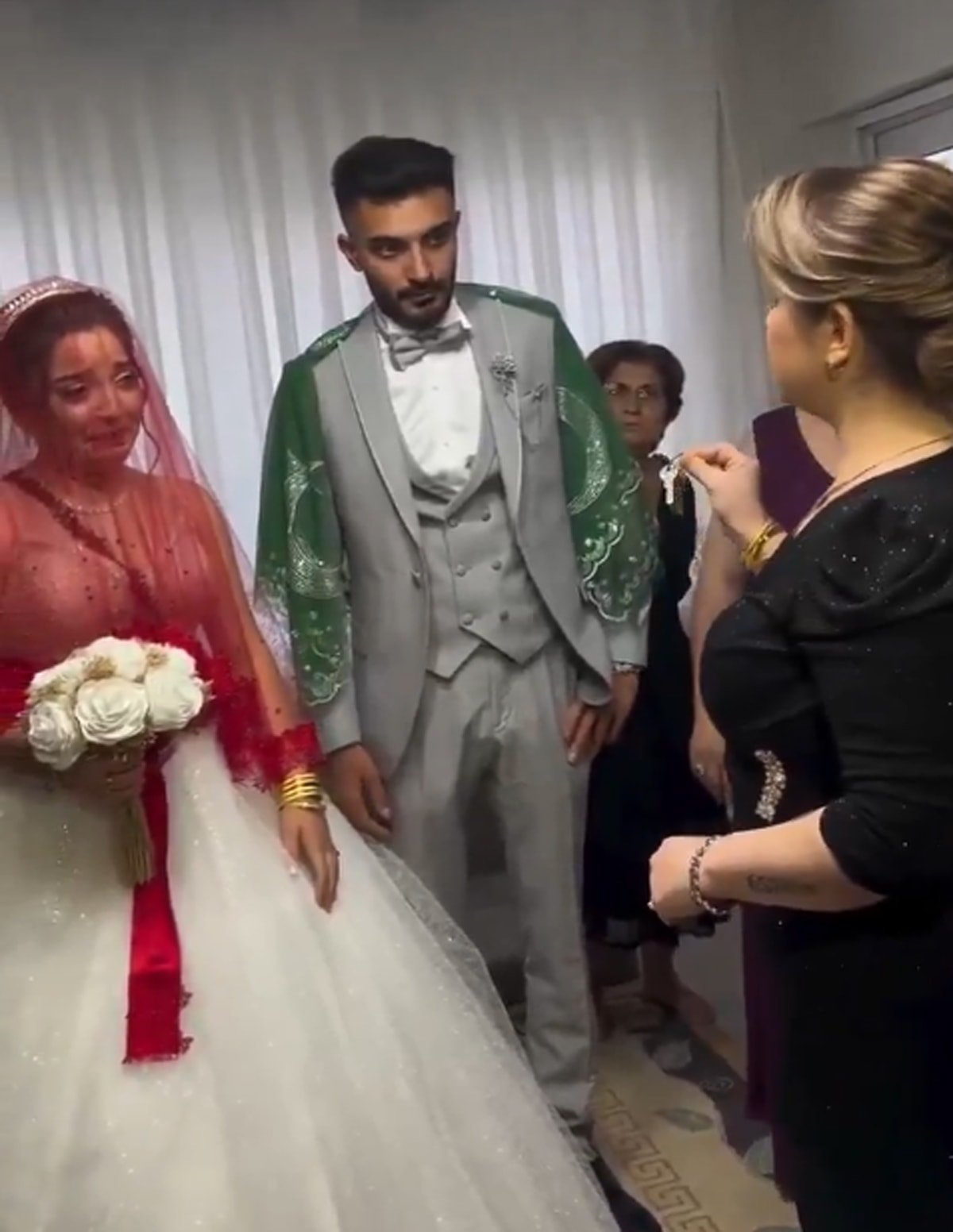 Konuşmasının ardından gelinin gelinliğini hafifçe kaldıran anne, kızının ayakkabısının içine bir miktar para bıraktı. Bu hareketini şu sözlerle açıkladı: Kızımın yol parası ayağının altındadır.